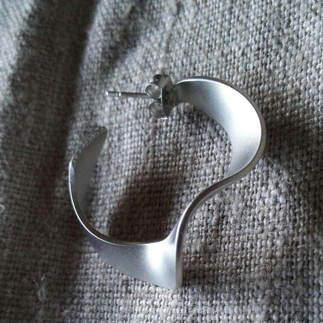 マットカラーのデザイン性のあるピアスです。見る角度によって様々な形に見えるのが特徴です。