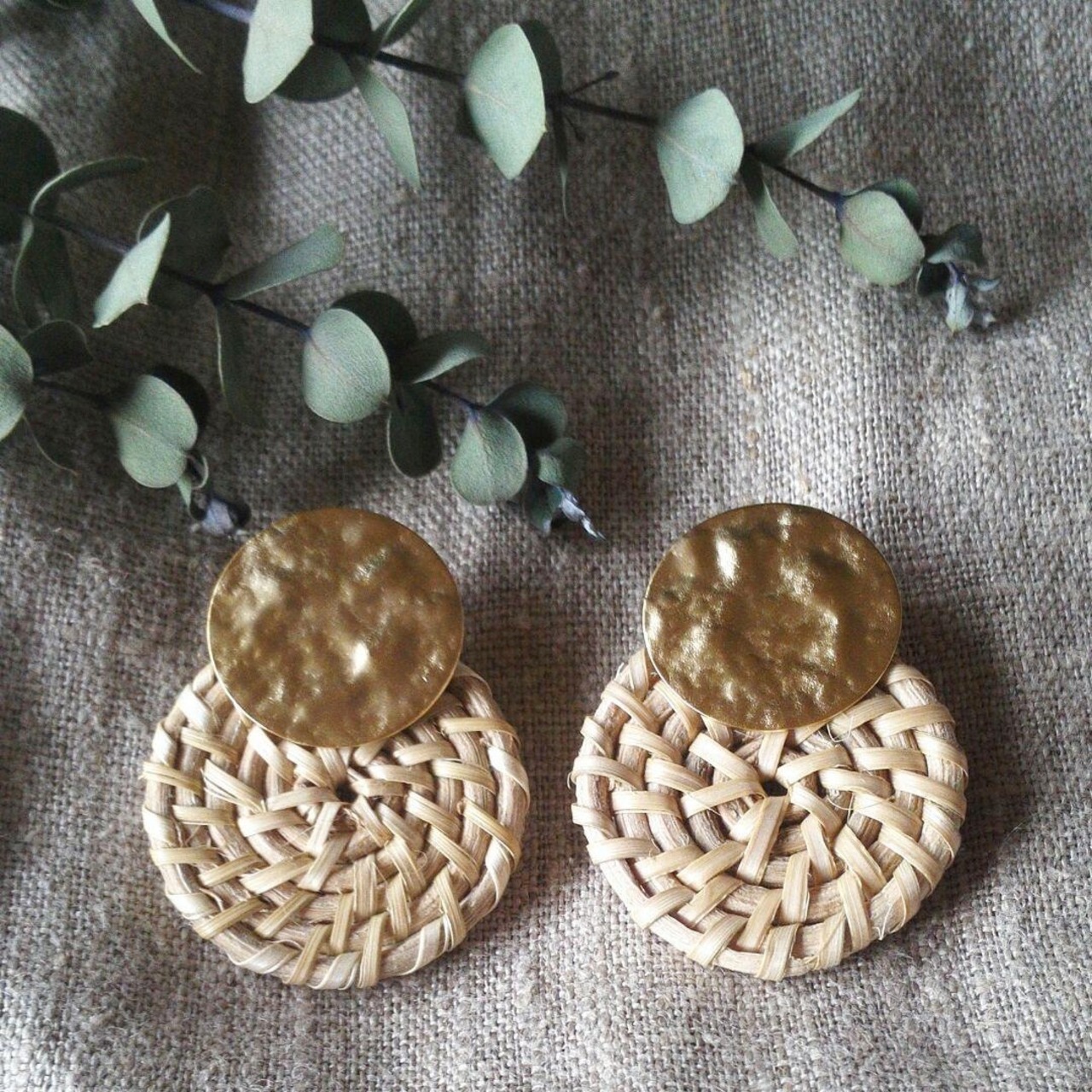 夏らしいラタン素材とマットカラーのデザイン性のあるピアスがコーディネートをよりおしゃれにしてくれるアイテムです。
