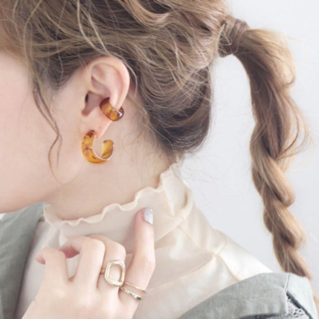 クリア素材のシンプルなピアス。クリアグレーなので落ち着きのある色合いです。シンプルな中にも存在感とアクセントのあるデザイン。