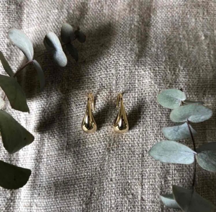 ティア型の小ぶりでシンプルなピアス。コロンとした可愛らしい形でシンプルな中にも存在感のあるデザイン。
